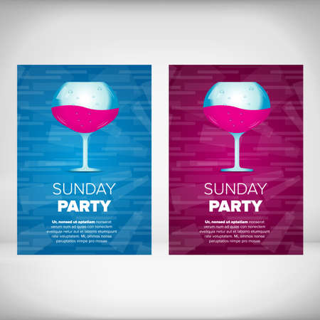 Sunday party leaflet with wine glass on an abstract color backgrounds FREE